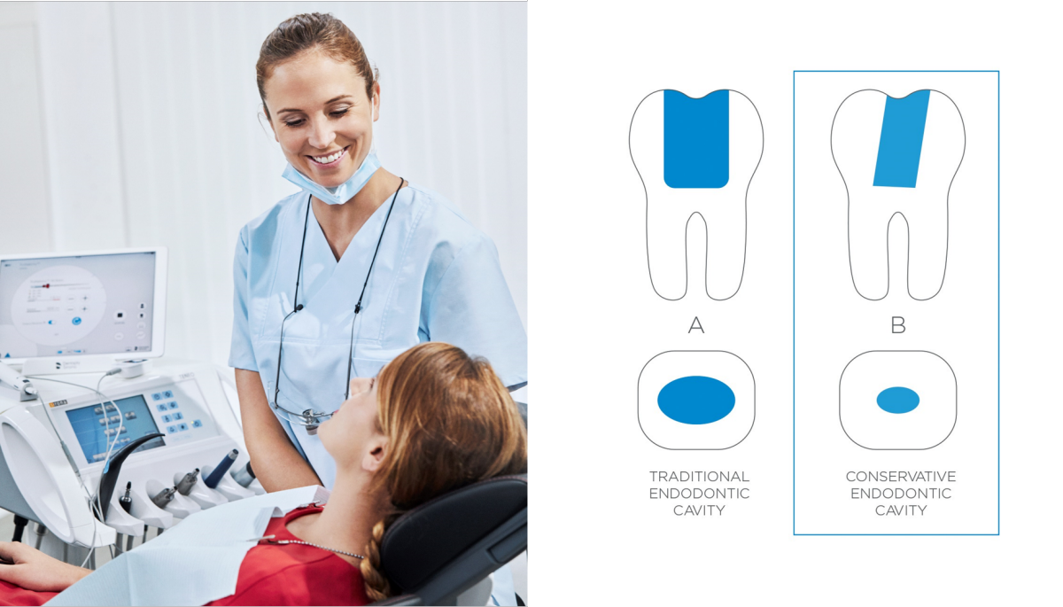 • Access is now possible from different angles while until now, structure needed to be sacrificed (traditional endodontic cavity).1