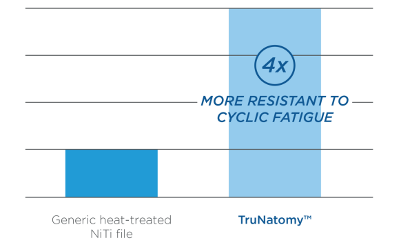 TruNatomy files provides enhanced safety as the risk of breakage is reduced due to its greater flexibility and resistance to cyclic fatigue.1