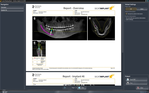 With the available planning report, you can document the results of your implant planning with a single click and print them out for the upcoming surgery.