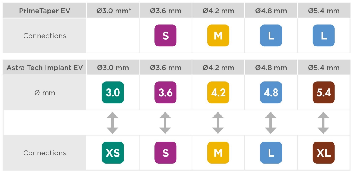 The harmonized and enhanced design is built on the Astra Tech Implant System EV prosthetics, with genuine stock abutments for the EV connection, including DS PrimeTaper Implant System.
