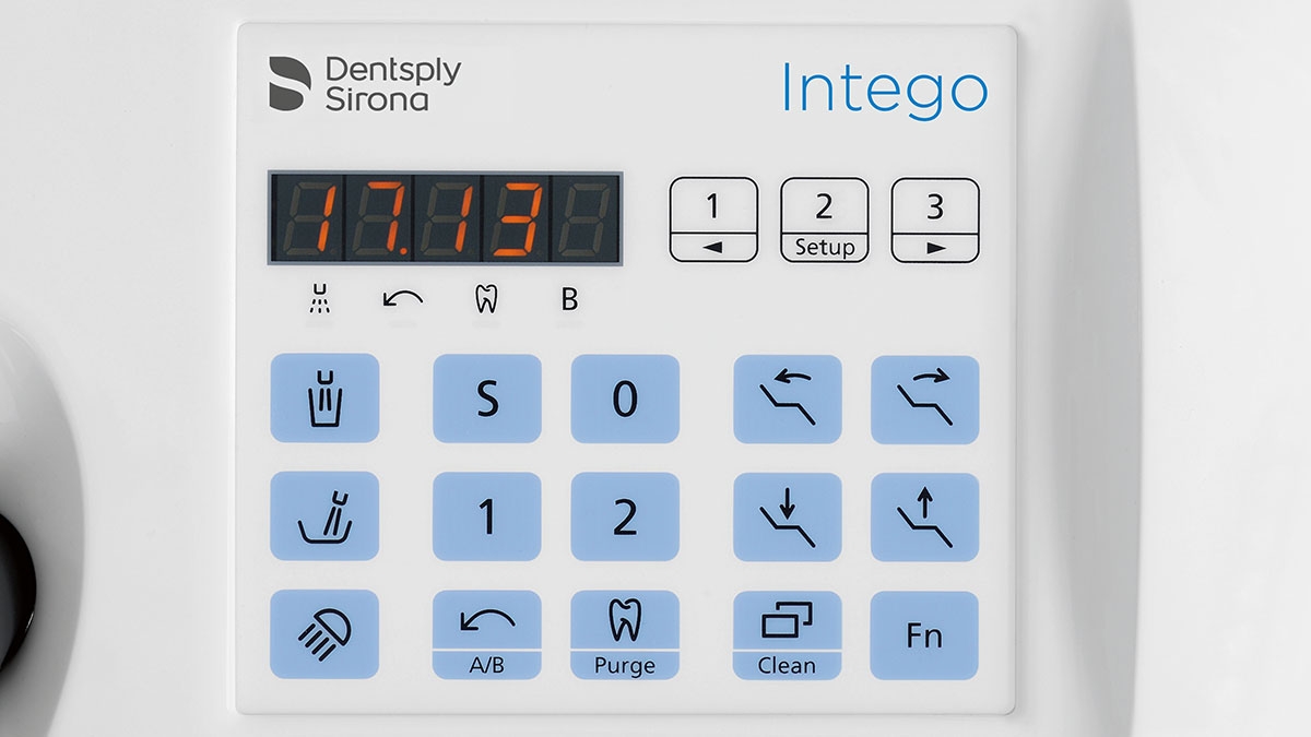 Intego is available with a compact water unit for an optimal use of space. The integrated fresh water bottle ensures a constant controlled water quality. The EasyPad user interface on the dentist element offers an easy and intuitive operation. Moreover, Intego guarantees good freedom of movement for your team thanks to its compact assistant element. Intego is available as TS or CS model - so you can choose your preferred way of working.