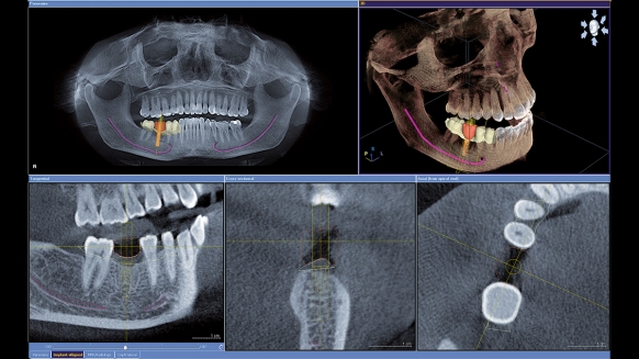 Galileos Implant는 효율적인 방식으로 임플란트 치료 계획에 대한 절차를 안내합니다. 다양한 차원의 영상 분석, 하악관의 신경점 시각화, 임플란트 삽입 및 편집 등의 기능으로 임플란트 위치과 각도 등을 조정할 수 있습니다.