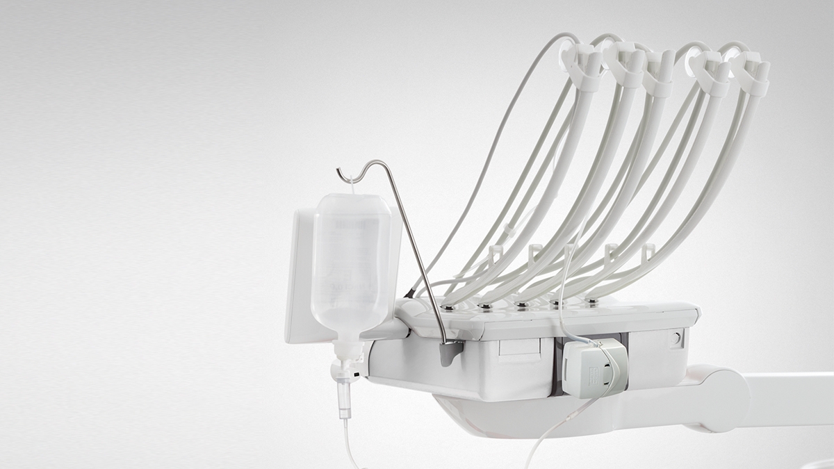 A bomba integrada para solução salina e o pedal se unem para completar o sistema. A quantidade de fluido de resfriamento estéril para cada passo da implantologia pode ser definida individualmente.