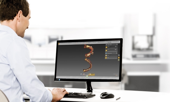 Após receber e revisar os pedidos so Sirona Connect, o laboratório pode trabalhar no design usando o software CAD inLab imediatamente. Alternativamente, o conjunto de dados do modelo 3D pode ser exportado para outro software CAD para design com a interface opcional inLab STL.